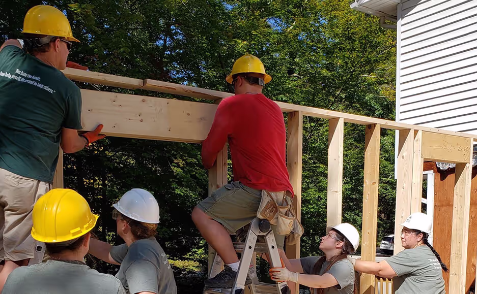 This September our team went out to Habitat for Humanity in Raymond, NH. We were able to meet the deserving veteran that is having the renovations done so he can better access his home. Getting to work with the same amazing people from the year before was fantastic. The dedication, commitment and care to help build these homes is truly great. Our day consisted of building the support walls, getting the roof tresses up, and spreading seed. We had great weather and it pushed us to get as much work done as we possibly could! If you have time to help out on a build site, we highly recommend it! You can find out more information here. http://www.senhhabitat.org/